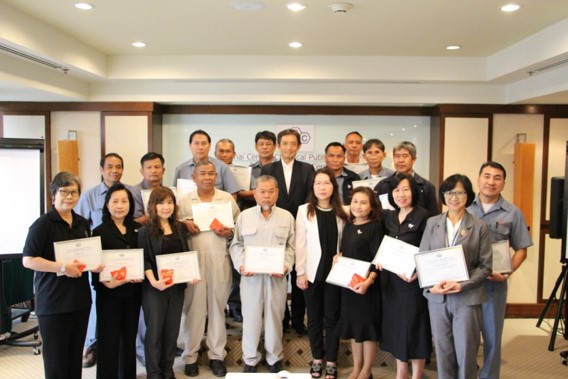 Mr. Kyosuke Sasaki, CEO & the President  of Thai Central Chemical Public Company Limited (TCCC) give The Certificate of Retirement and 1B Gold to All Retired Employees on Retirement Ceremony 2016  at  Banyan tree Hotel Bangkok.